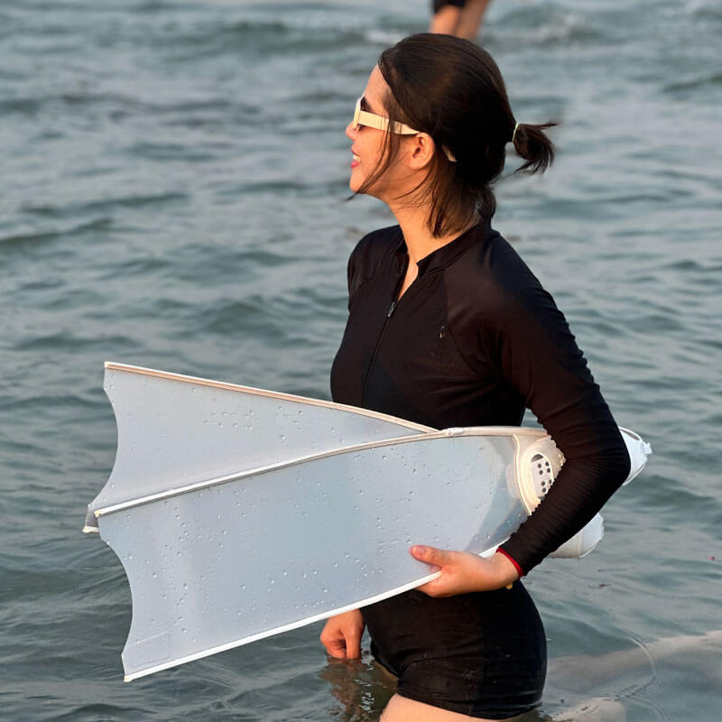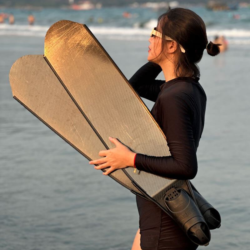 - Đồ lặn có giá trị cao, vì vậy khách hàng cần đặt cọc 2 triệu đồng cho mỗi đôi fins và cung cấp căn cước công dân hoặc giấy phép lái xe.